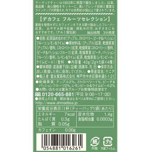 アーマッドティー デカフェフルーツセレクション 20包 ×1箱【AHMAD 紅茶 カフェインレス TEA ノンカフェイン】